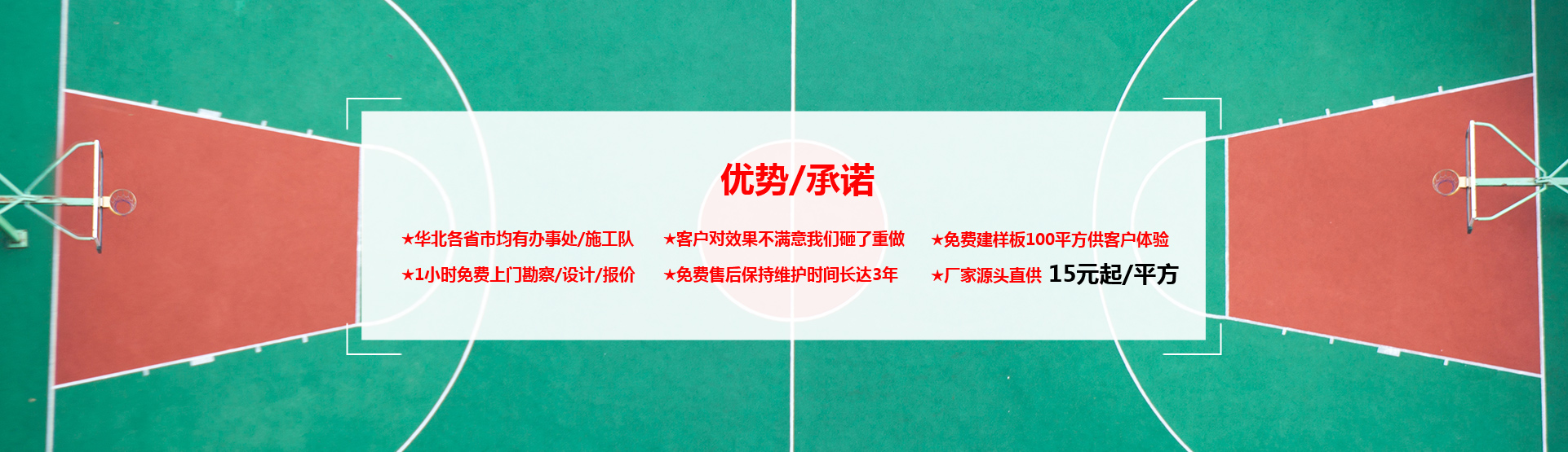 已經(jīng)在全國各地三十多家公司得到了一定的認(rèn)可。并取得了良好的經(jīng)濟(jì)效益和社會效益。 塑膠籃球場施工 塑膠網(wǎng)球場施工,公司近年來施工范圍遍及全國,近幾年完成的塑膠丙烯酸、彈性丙烯酸與人造草坪場地施工達(dá)100萬平方米以上,完成的主要工程全部通過客戶的驗(yàn)收,并被評為優(yōu)良工程。擁有成套設(shè)備及噴涂設(shè)備,能勝任各種復(fù)雜條件下的等體育場地工程設(shè)計與施工;七支經(jīng)驗(yàn)豐富、技術(shù)一流的施工隊伍,具備了多個工地同時施工的能力,我們將堅持"真誠服務(wù),回報社會;的企業(yè)宗旨,保證質(zhì)量過硬、客戶滿意,及時完成各項施工任務(wù)。